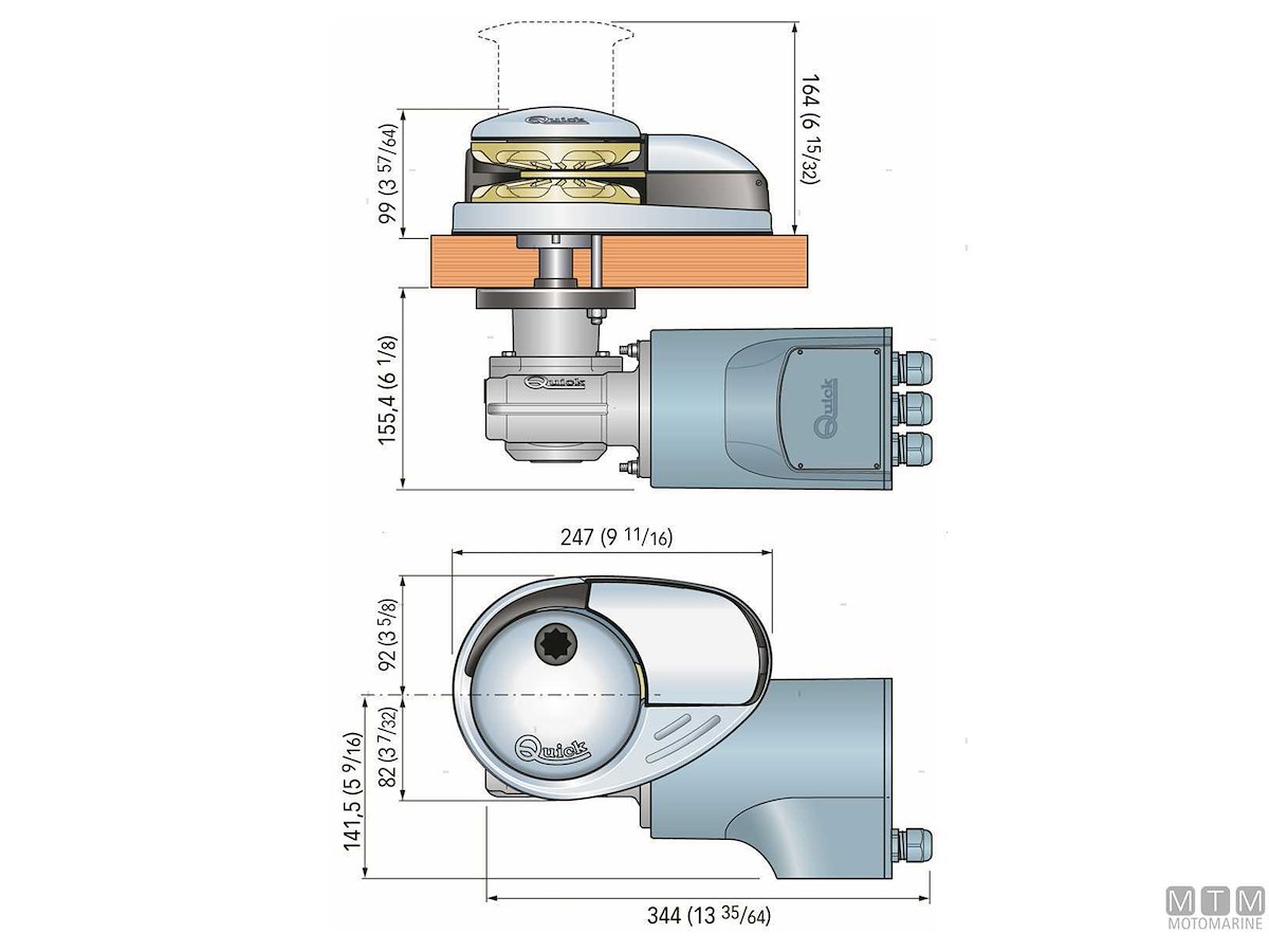 Verricello salpa ancora cima/catena Quick con organi di trazione in Bronzo e Acciaio Inox. Con sistema manuale di caduta libera della catena e dispositivo tendicima. Testa e base in Acciaio Inox. Motore stagno IP67. Completo di control box e maniglia. I verricelli della serie economica Custom Line non hanno il sensore contametri.