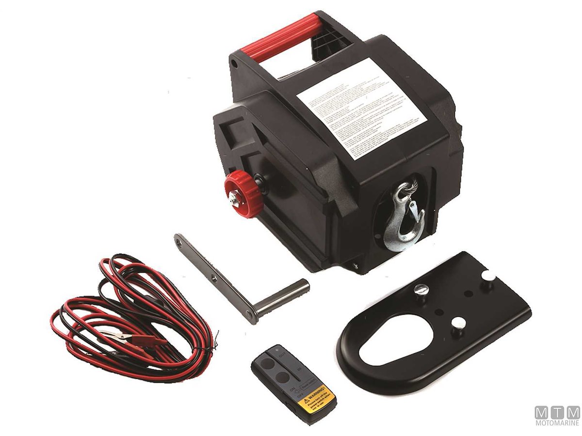 Verricello elettrico radiocomandato con montaggio su base per alaggio imbarcazioni e applicazioni di recupero. Alaggio e varo si effettuano elettricamente con pulsantiera wireless. Motore 12V a magneti permanenti da 0,3 kW con frizione per il rilascio manuale e sistema automatico di frenata. Velocità di recupero 1,8 m/min a pieno carico.