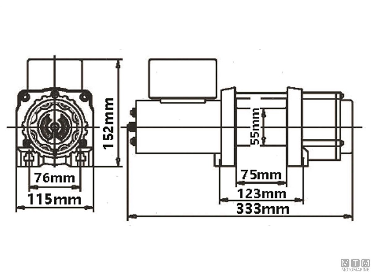 Verricello elettrico per alaggio imbarcazioni e applicazione su fuoristrada. Alaggio e varo si effettuano elettricamente con pulsantiera cablata. Motore 12V a magneti permanenti da 1,3 kW con frizione per il rilascio manuale e sistema automatico di frenata. Montaggio con base e 4 viti M8. Completo di passacavo a rulli che previene abrasioni.
