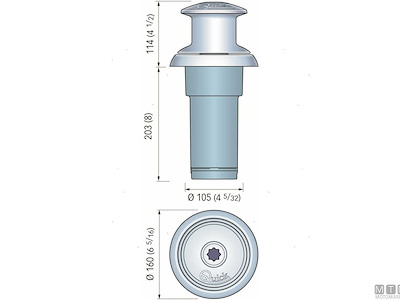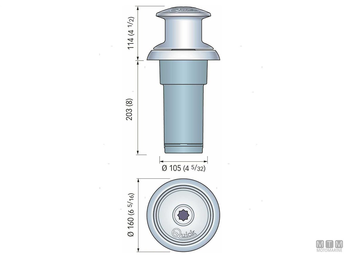Verricelli da tonneggio Quick con base in Alluminio Anodizzato e campana in Bronzo Cromato. Motore verticale stagno IP67 molto facile da installare. Completo di control box e maniglia.