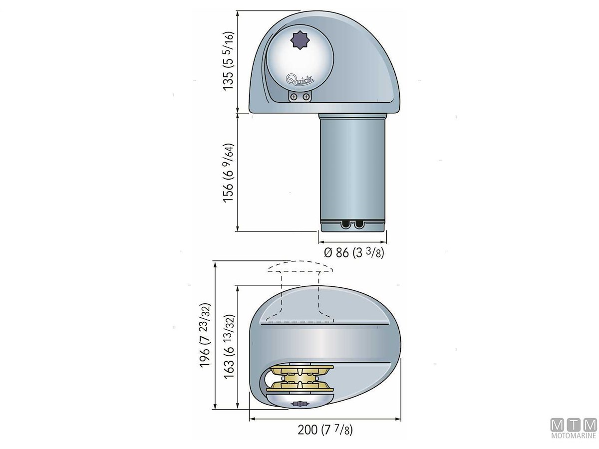 Verricello salpa ancora orizzontale Quick con organi di trazione in Bronzo e Acciaio Inox. Completo di sensore contametri e sistema manuale di caduta libera della catena. Cassa e base in Alluminio Anodizzato. Motore stagno IP66. Completo di control box e maniglia.