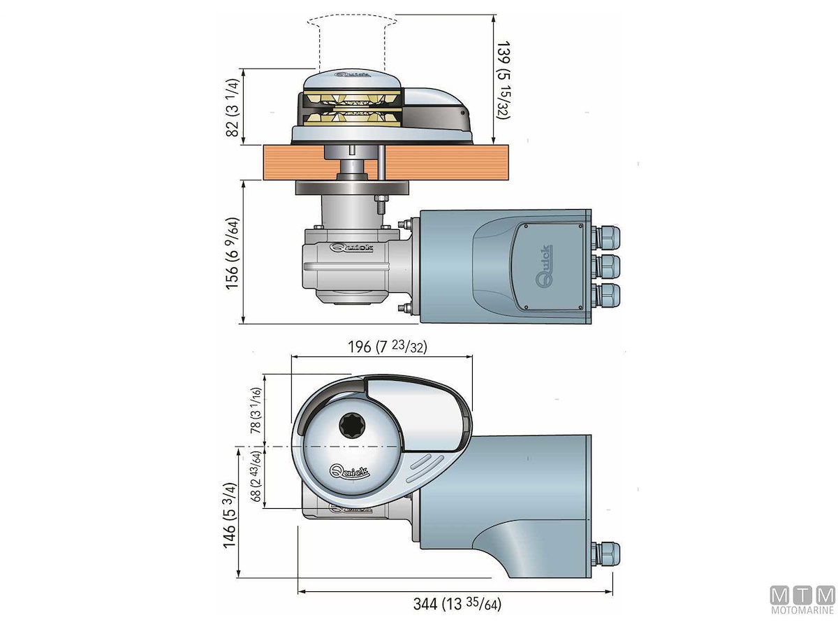 Verricello salpa ancora cima/catena Quick con organi di trazione in Bronzo e Acciaio Inox. Completo di sensore contametri e sistema manuale di caduta libera della catena. Sistema di recupero manuale d’emergenza e dispositivo tendicima. Testa e base in Acciaio Inox (Inner Composite Structure). Motore stagno IP67. Completo di control box e maniglia.