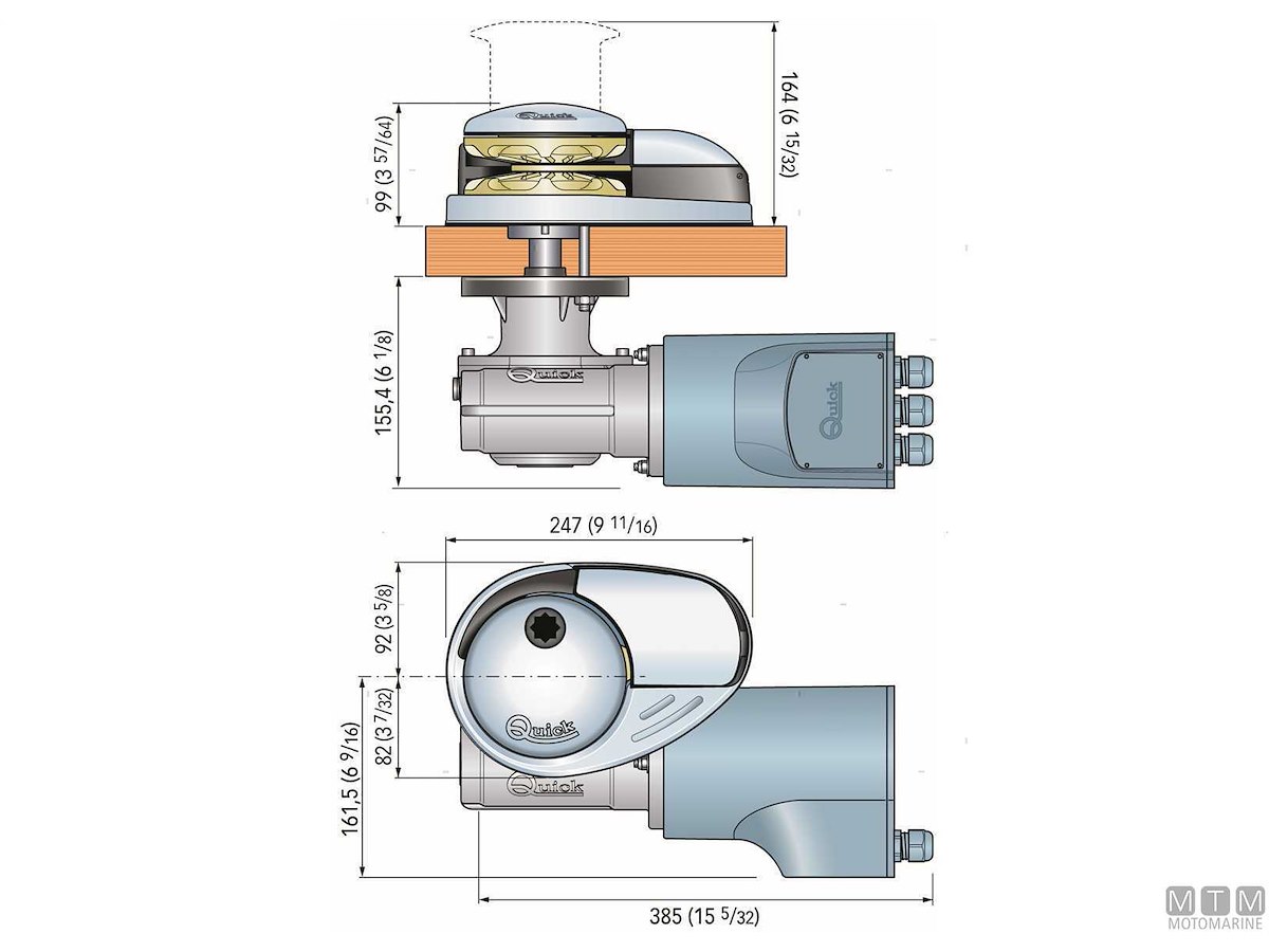 Verricello salpa ancora cima/catena Quick con organi di trazione in Bronzo e Acciaio Inox. Completo di sensore contametri e sistema manuale di caduta libera della catena. Sistema di recupero manuale d’emergenza e dispositivo tendicima. Testa e base in Acciaio Inox. Motore stagno IP67. Completo di control box e maniglia.