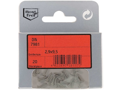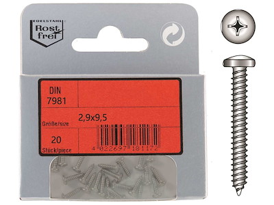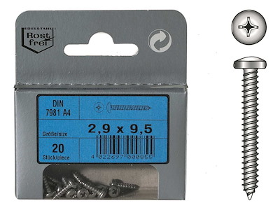 Viti autofilettanti con testa cilindrica DIN 7981 in Acciaio Inox A4.In comodi ed eleganti blister.
