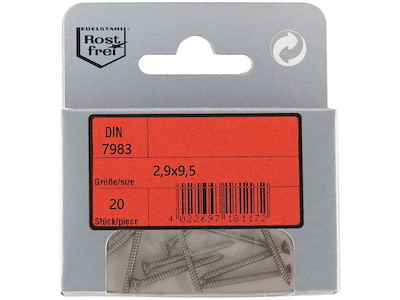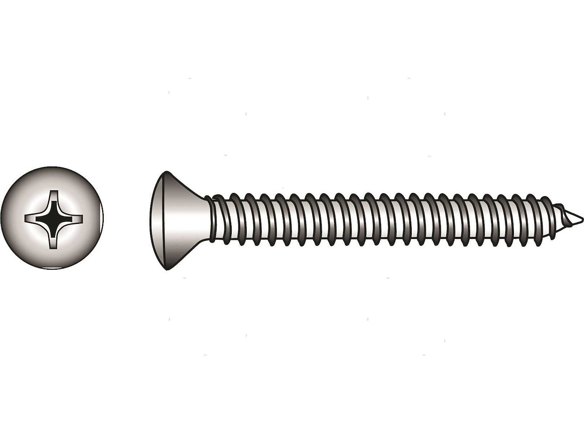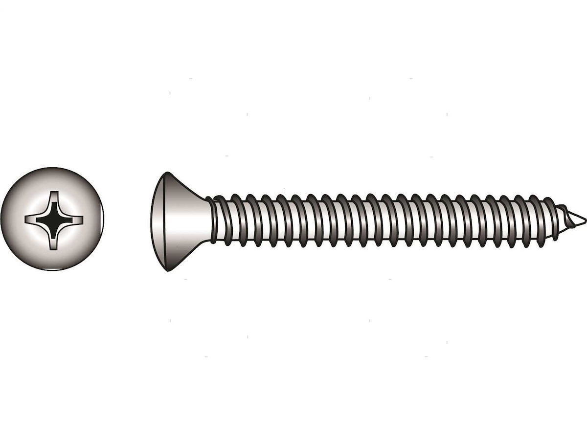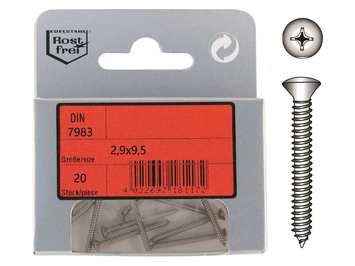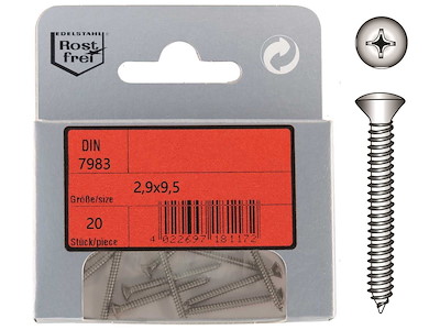 Viti autofilettanti con testa svasata con calotta DIN 7983 in Acciaio Inox A4.In comodi ed eleganti blister.