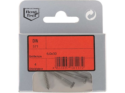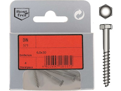 Viti legno testa esagonale DIN 571 in Acciaio Inox A4. In comodi ed eleganti blister.