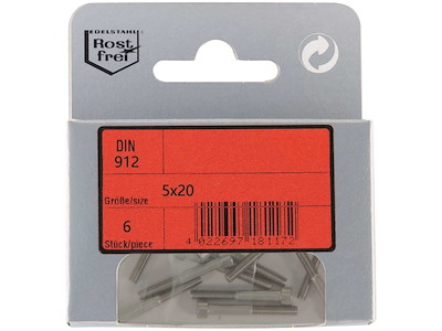 Viti testa cilindrica con cava esagonale DIN 912 in Acciaio Inox A4. Confezione in Blister completa di dadi.