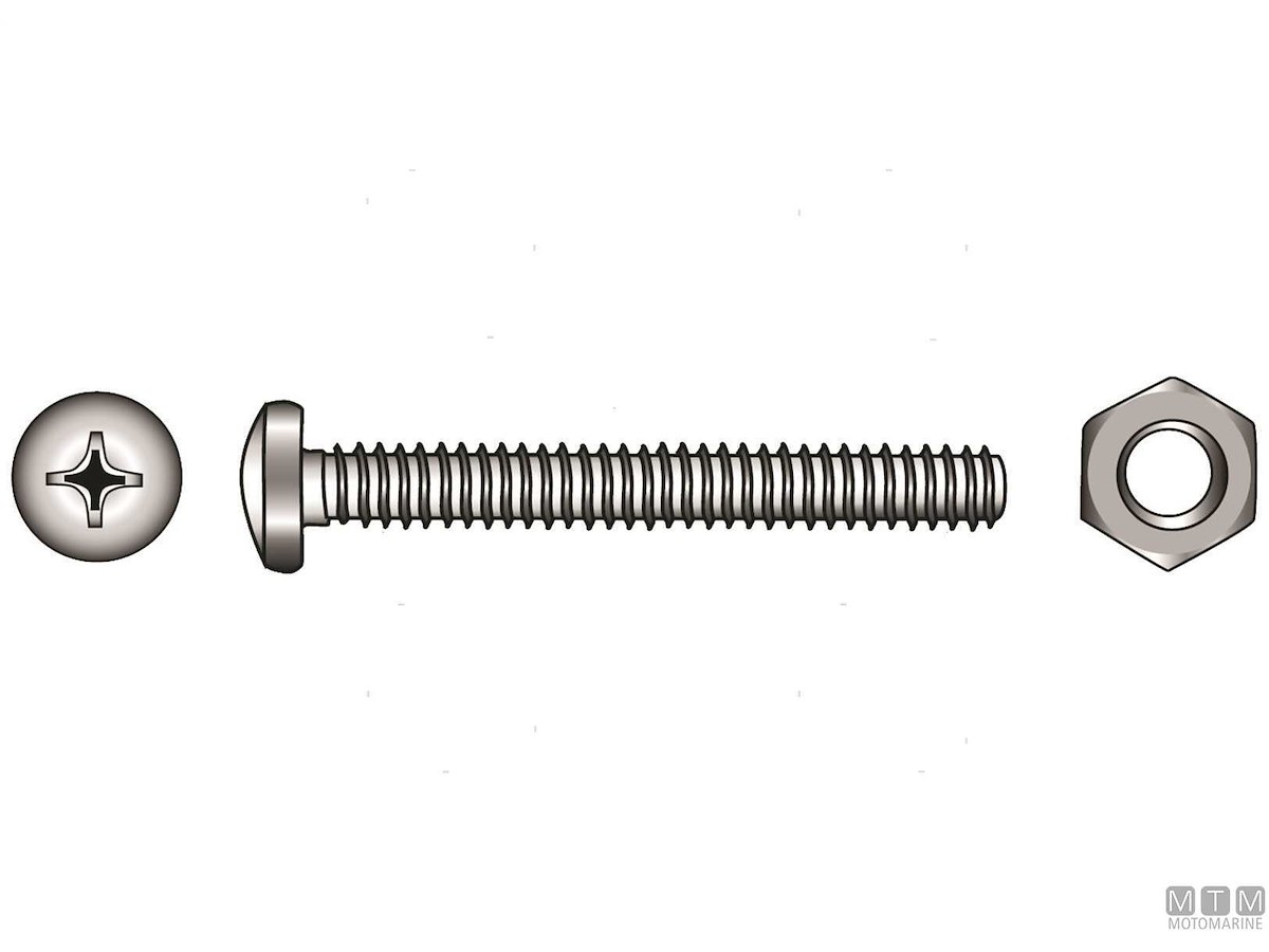 Viti testa cilindrica DIN 7985 in Acciaio Inox A4. Confezione in Blister completa di dadi.