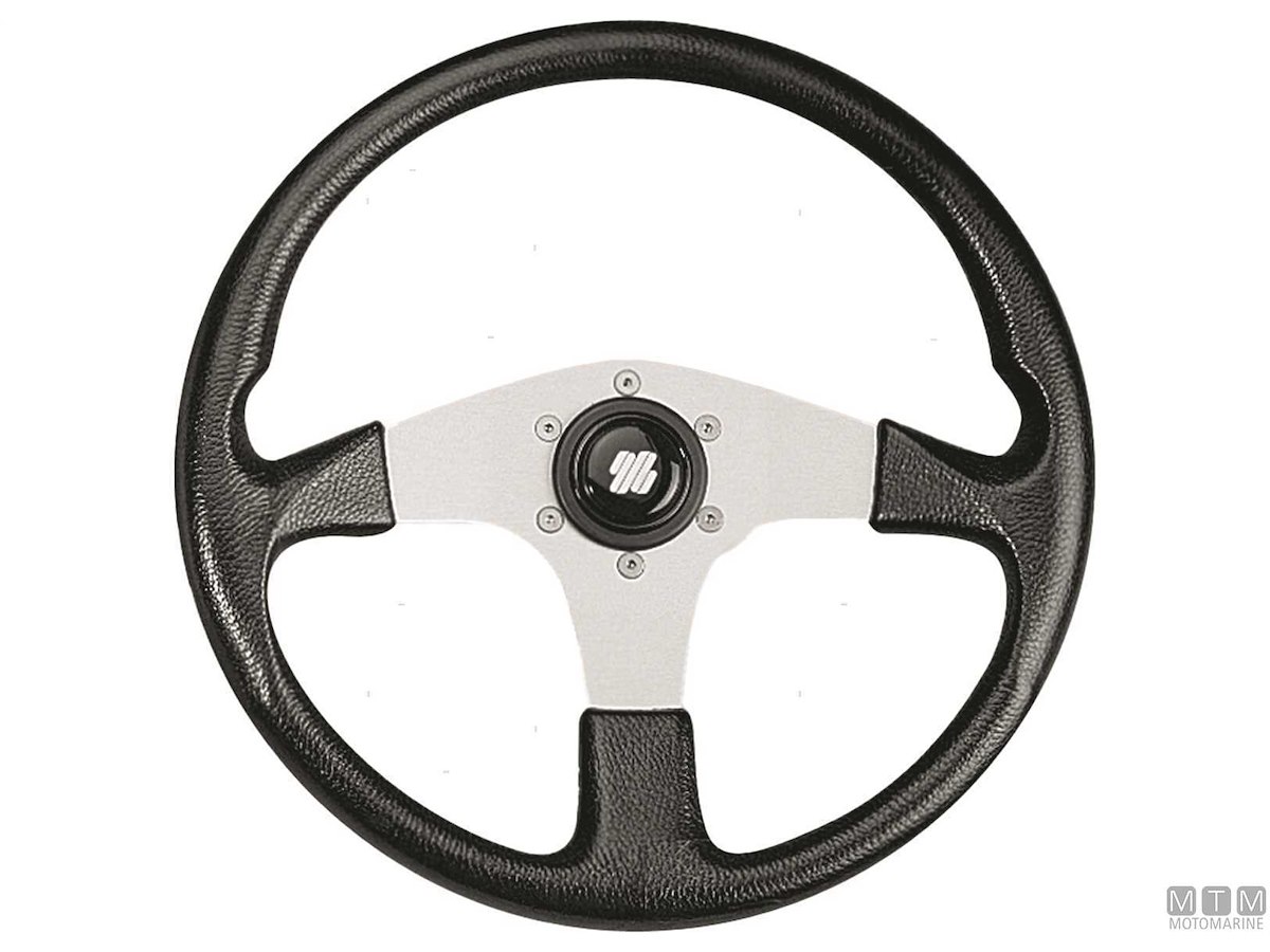 Volante con telaio in Alluminio Anodizzato e impugnatura morbida in Poliuretano. Certificato CE-ISO23411 e conforme ABYC. Il mozzo con tappo va ordinato separatamente.