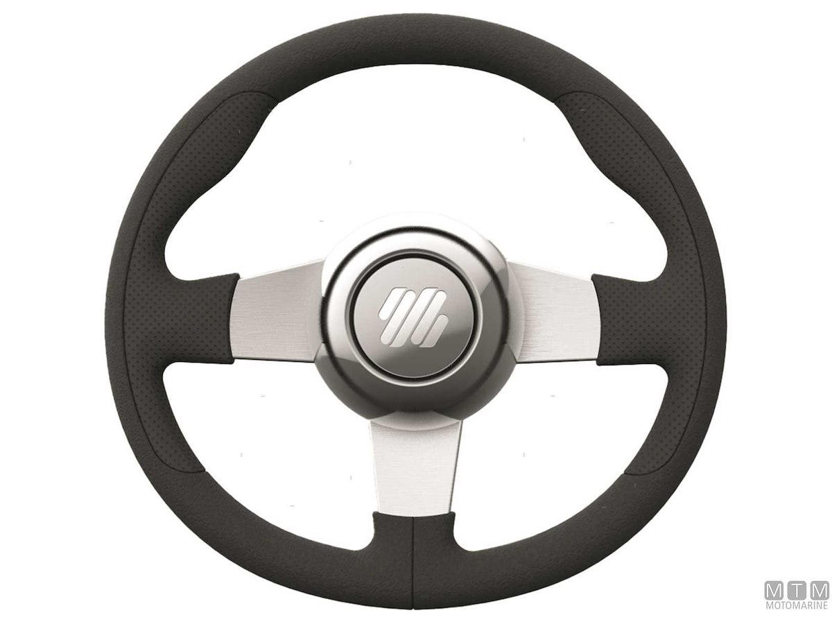 Volante con telaio in Alluminio Anodizzato e impugnatura morbida in Poliuretano. Certificato CE-ISO23411 e conforme ABYC. Completo di tappo centrale cromato e mozzo con cono standard da 3/4".