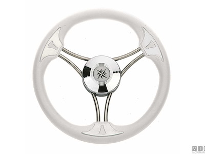 VOLANTE TARGA BIANCO POLIURETANO E ACCIAIO INOX D350MM