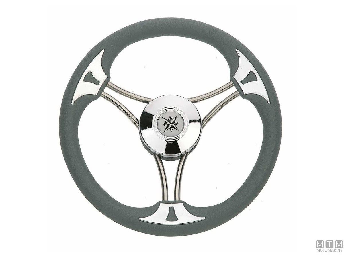 VOLANTE TARGA GRIGIO POLIURETANO E ACCIAIO INOX D350MM