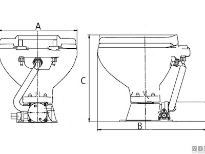 Tazza in porcellana vetrosa bianca di eccezionale qualità per una perfetta igiene. Funziona sia con acqua dolce che salata, si può montare sopra o sotto la linea di galleggiamento.