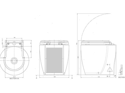 Toilet Ocean Laguna Silent Hydrovacuum con controllo elettronico del carico e scarico acqua. Consumo acqua ridottissimo, grande comfort e silenziosità. Tazza in porcellana antiurto. Si può montare sopra o sotto la linea di galleggiamento. Lo scarico avviene con pompa/maceratore incorporata che drena gli scarti fino a 7 metri. Da completare con pompa carico acqua. Entrata ø 19 mm (3/4"), uscita ø 38 mm (1"1/2) modificabile a 25 mm (1").
