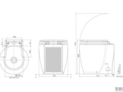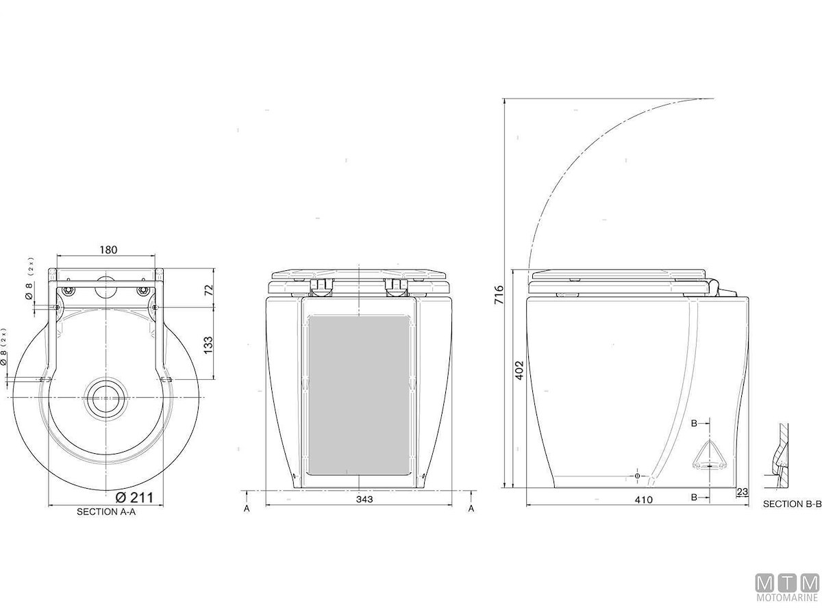 Toilet elettrica Ocean Laguna Standard:• Controllo automatico per il carico e lo scarico dell'acqua • Unità di pompaggio combinata per lo smaltimento dei rifiuti • Pannello di controllo• Coperchio della seduta soft-close • Materiali antiurto resistenti alla corrosione • Valvola di non-ritorno • Autoadescante fino a 1.5 metri di altezza • Montaggio della pompa reversibile• Si può montare sia sopra che sotto la linea di galleggiamento.La pompa maceratore di scarico consente di drenare gli scarti fino a 3.5 metri in altezza. Entrata ø 19 mm (3/4") uscita ø 25/38 mm (1" - 1"1/2).