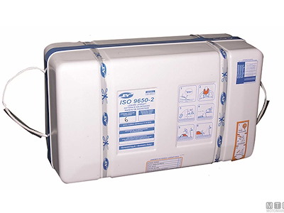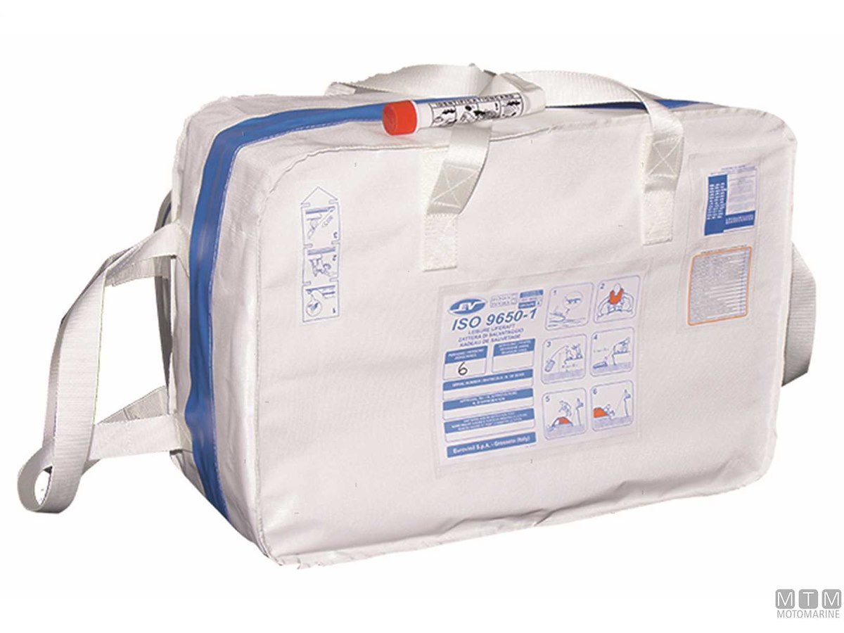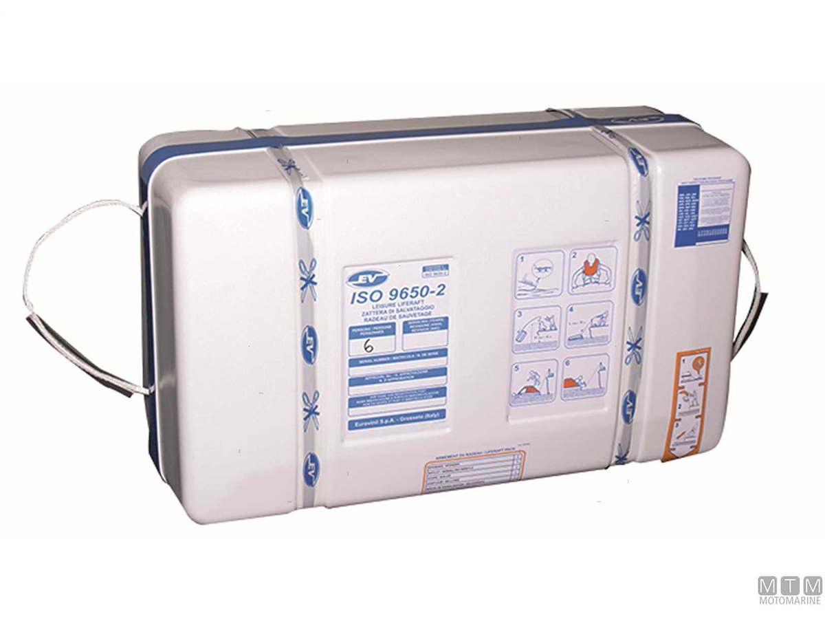 Zattera autogonfiabile ISO9650:2005 per navigazione da diporto senza alcun limite oltre 12 miglia dalla costa con predisposizione equipaggiamento per soccorsi oltre le 24 ore. E' la zattera di più alto livello tra i prodotti certificati a normativa europea ISO. Contenitore in valigia oppure rigido in ABS.